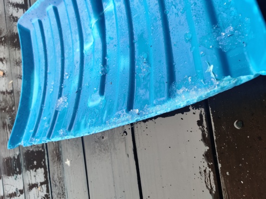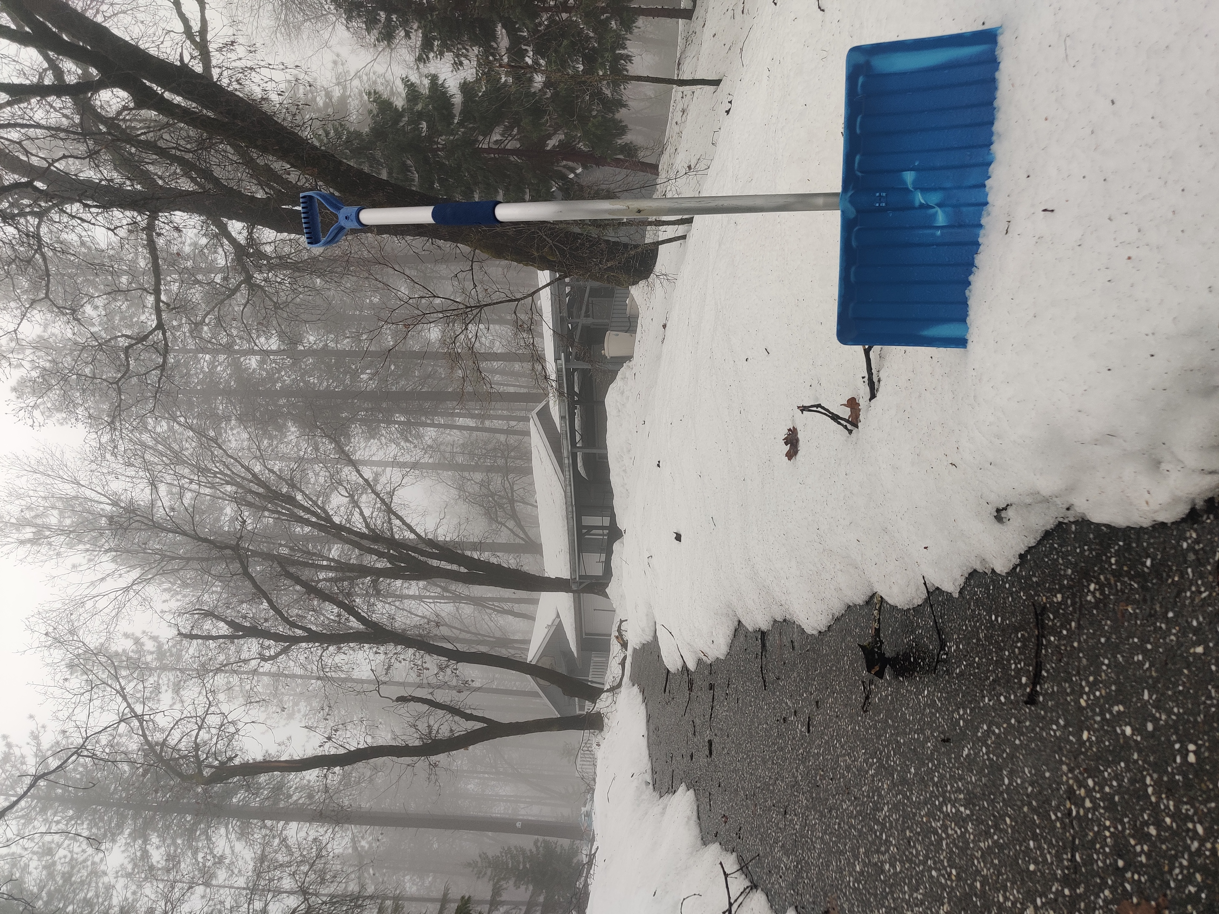 Since the snow is finally melting in a warm rain shower, I want to take a little bit of time to appreciate a metal-and-plastic friend that has been with me through the past few strenuous, but fortunately not disasterous, weeks. Last year's winter storm brought down numerous trees, trapping my then-pregnant wife and I behind downed electric lines. This storm, perhaps due to the weeding-of-the-weak trees in 2022, simply brought an unusual amount of snow to the Sierra Nevadas. It was a blessing for us that we only got half a meter of accumulation. Other parts of the county had three times as much and are still without power or a way to get out of their homes. Regardless, the little blue snow shovel for whom this post is dedicated became my companion. It felt the anxiety in my grip and the exhaustion in my lifts in these drought-breaking, but inconvenient blizzards.