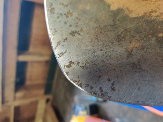 Left, my lovely blue shovel with its scoop edge all jagged through frequent scraping on ice and asphalt. Right, a spade hand-sharpened by an amateur (me)