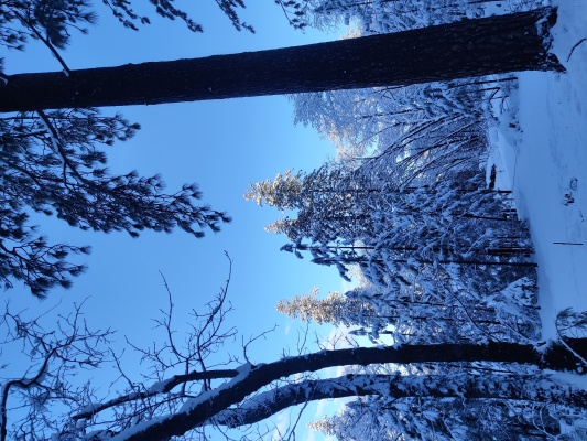 The snow was beautiful, but the first sun to shine upon the trees was felicity