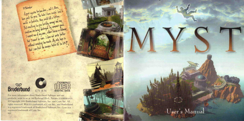 Ha ha! I got this far without talking about Myst mirror. I cannot think of a piece of period software that better reflects on the solitary journey of investigation. While the game has a potent eeriness, the user is (nearly) detached from the events: an observer and wanderer foremost. I'm ashamed to say that despite having the entire series I've only played an hour or so of Myst in scattered bursts throughout my life. I'm almost afraid to finish it in case the plot does not live up to the magical atmosphere in the first few scenes.